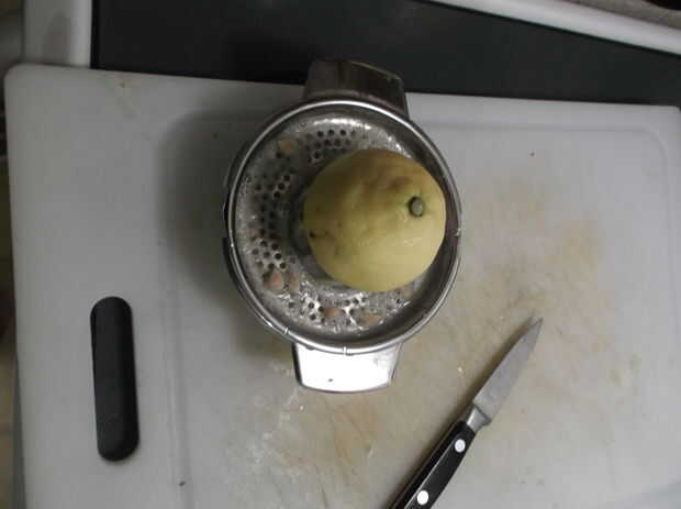 3) jugo de limón. Sólo jugo de un limón entero y guarde el resto del jugo en un tarro viejo (no un tarro de "Old Spice", pero un frasco que se utiliza para mantener la crema del tártaro o algunos tal cosa. El vidrio es mejor.). Utilice el jugo sobrante en un par de días para obtener mejores resultados. Necesita una cucharada completa (muy generosamente pour porque me gusta extra limón en la ensalada, YMMV).