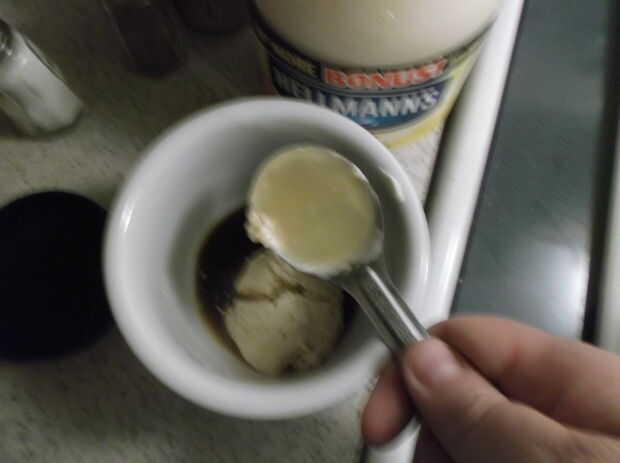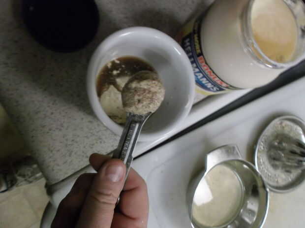 Batir hasta lograr una consistencia uniforme.  Debe ser gris poco apetitoso.  No se deje engañar.