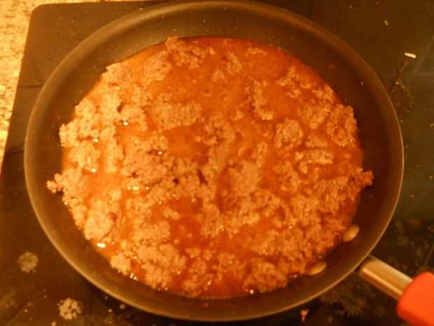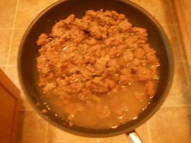 Una vez que la carne molida se hace cocinar, drenaje (si existe) la grasa.