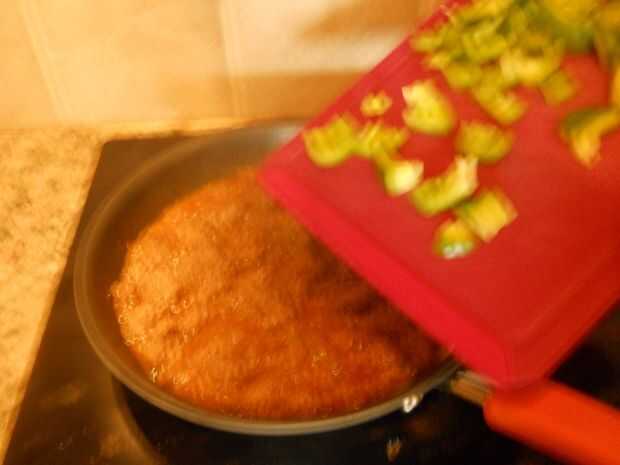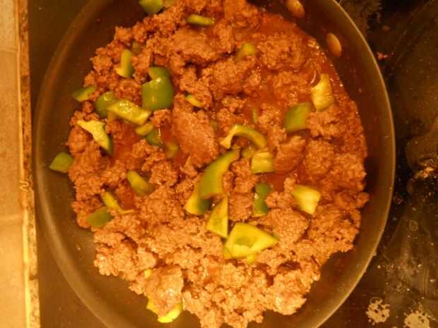 El condimento se trabaja con el agua para formar una salsa que se envuelve la carne molida. Aproximadamente en la mitad para la salsa como consistencia, agregar las verduras. Lo hago porque me gusta mi verduras al dente. Pero, si te gusta la tuya fresco dude en agregarlos al servir.