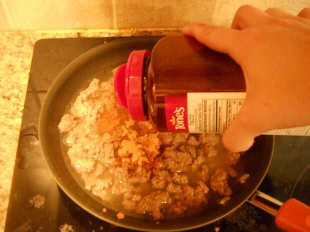 Agregar el condimento para tacos. (Aproximadamente 1/8 - 1/4 taza).