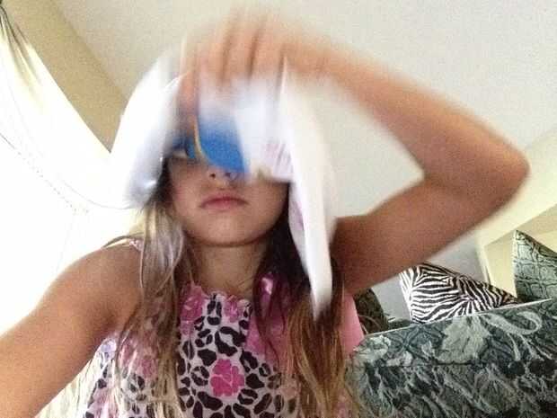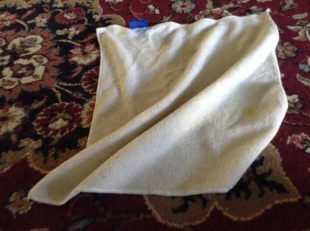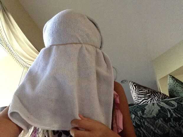 Coloque el paño o toalla sobre su cabeza para no ver y poner la goma sobre él.