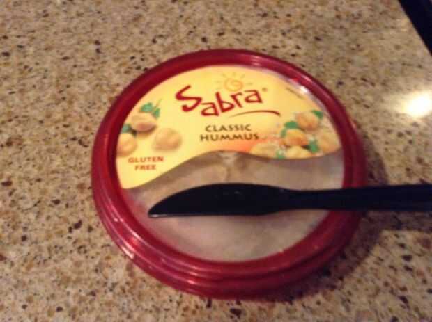 Empezar con un bagel en frente de usted. Luego lo corte en trozos pequeños. En cada pieza que se difunda en un humus Coloque las piezas sobre una placa
