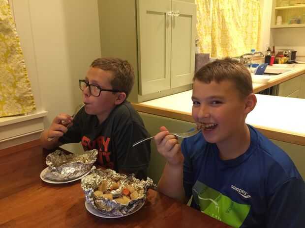 ¿Si alguna vez queríamos cenar un relleno camping sin mucho trabajo? Es muy difícil para una cena que gustará a la toda la familia o grupo. Pero hay una solución, hoja cenas! Estoy en exploradores de muchacho y he hecho cenas de papel 4 veces hasta ahora para los exploradores, y todos ellos, disfrutaron con empanadas bien medio, zanahorias, patatas y cebolla cocida sobre el fuego, te puedes equivocar! Estas comidas cuestan aproximadamente 3 dólares cada uno! La comida también tiene muy pocos platos, que es perfecto para acampar, y esta comida puede ir también con una guarnición de mac y queso y fruta.