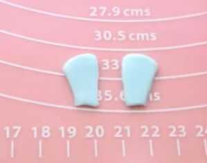 Estirar un trozo de fondant azul luz para cortar las mangas. Establecer estas a un lado para endurecer así.