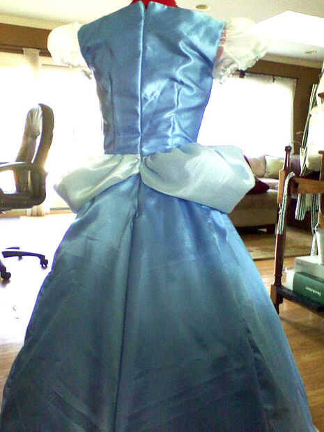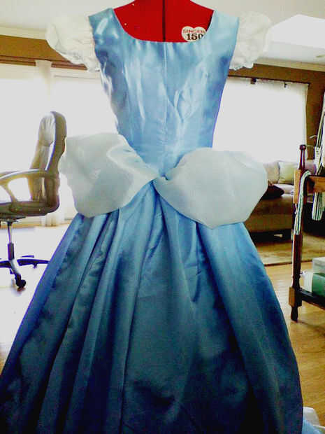 Mientras que en un día de Joann cayó en amor con una tela de Satén azul brillante, y yo sabía que tenía que ser la Cenicienta de este año. Comencé en enero de este año y terminar antes del verano. Más todos los proyectos probablemente tomaron cerca de 2 días como máximo. He utilizado un patrón de princesa de Disney de simplicidad para la blusa y el "volante". Gracias a una danza de la high School secundaria hace unos años tengo una enagua muy bien enorme para ese efecto princesa. El patrón original de la falda era demasiado estrecho para mi enagua usé un viejo patrón solía que tuve que sabía encajar. Está totalmente forrado con una cremallera invisible.