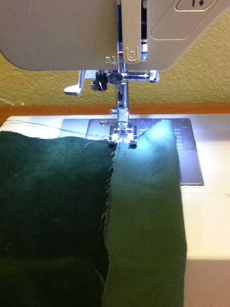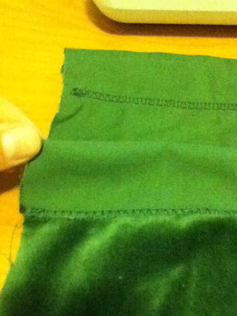 El cordón tendrá un manga o un túnel para pasar por en la parte superior de la bolsa. En los dos más cortos lados (los 17" lados) veces más alrededor de una pulgada de material. Hacer suficiente espacio para el lazo que pasar dos veces.