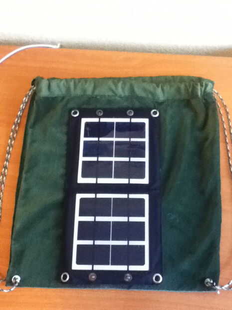 En este punto, es tuyo para personalizar. Me ha pasado a tener un panel solar portable - complementos de mi centro de reciclaje de electrónica local - similar a este. Cosí el panel en 4 lugares con una aguja e hilo.