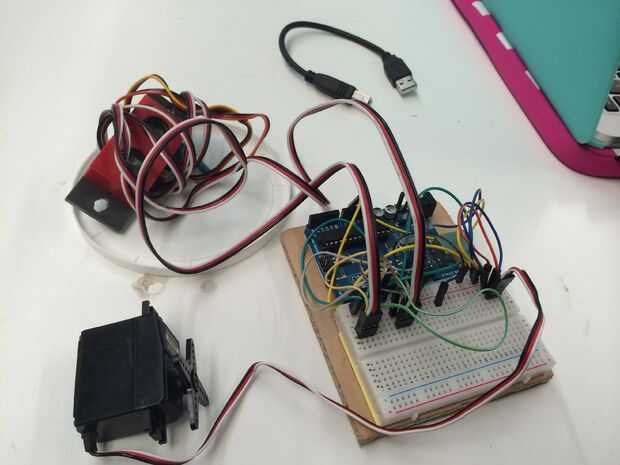 He empezado trabajando para añadir en la pistola para el circuito y el producto, sin embargo he encontrado que el Servo Motor es demasiado débil para moverse eficientemente la pistola hacia adelante y hacia atrás. Por lo tanto he tenido que cambiar mi motor de un Servo a un Motor de corriente continua orientada de 12V (un Motor del limpiador del parabrisas). Explicaciones sobre cómo hacerlo se añadirá al producto final está trabajando correctamente.
