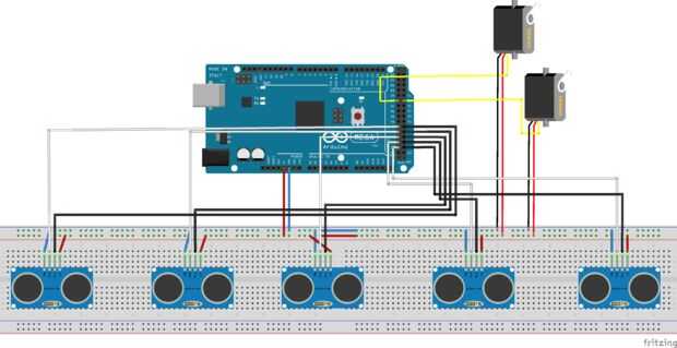 Estos es bastante recta hacia adelante. Sólo tiene que conectar cada pin del disparo y el eco de los módulos que van a la Junta