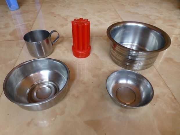 • Un molde interior que encaja dentro del molde exterior con suficiente espacio entre ellos. Aquí he utilizado un molde de polietileno de alta densidad plástico (HDPE) con diseños. Si usted puede conseguir el asimiento de un molde de metal adecuado que será mejor que el plástico.