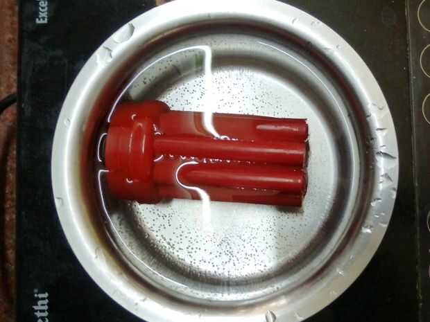 Si usas un molde de metal interior entonces usted no necesita hervir. He puesto el molde de polietileno de alta densidad en agua hirviendo durante unos cinco minutos antes de su uso.