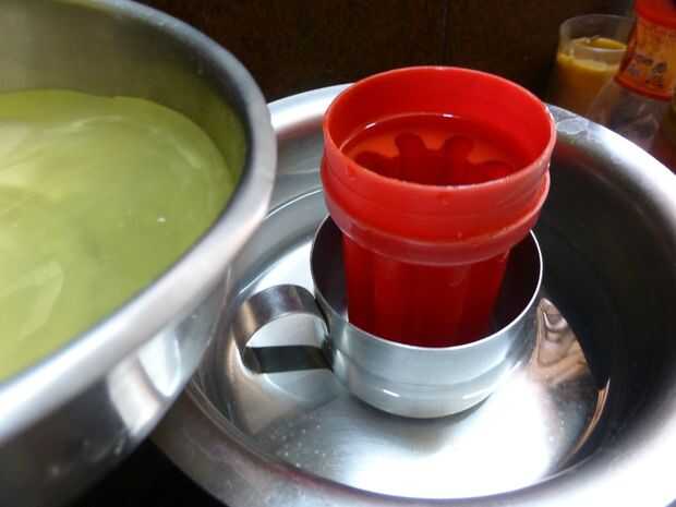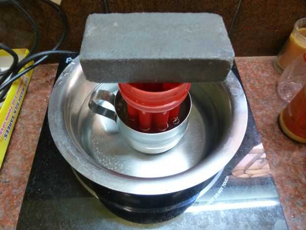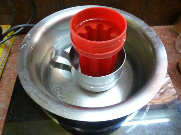 • Coloque la Copa de metal en el agua que se utilizará como molde externo