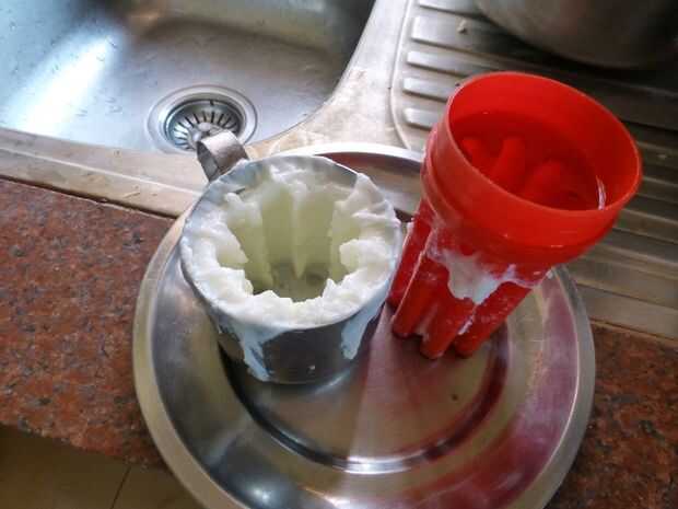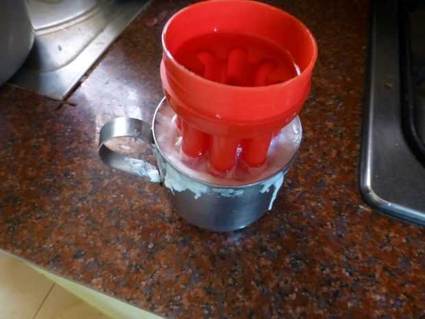 • Tomar la taza de agua hirviendo y retire el molde interno. No fuerce la