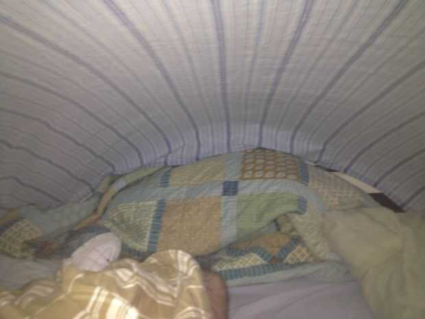 Tu hoja en posición plana en la cama y traer sobre la CA. Yo mezcle cuando duermo así te darás cuenta que usar clips para asegurar mi hoja a la unidad. También tenga en cuenta que no bloquee el puerto de aire entrantes. La razón para este doble. Primero es que queremos un efecto globo que ocurra, por lo que no queremos que la bomba de aire frío en la zona de la hoja y también chupar derecho nuevamente dentro de la CA. También se encuentra el sensor de temperatura en esta zona y queremos aspirar el aire caliente del exterior para que continúe enfriar la zona escarpada zona. Una vez que han cubierto la hoja de su tiempo para entrar en tu Iglú de la hoja. La idea aquí a atrapar tanto aire como sea posible cerrando todos los agujeros. Llegan entre la izquierda y derecha de la CA y encontrar la esquina de la hoja plana y les tire directamente hacia atrás. Luego doblar en la parte delantera de la unidad de aire acondicionado y tiro una almohada abajo de yapa. Ahora vaya a ambos lados de la hoja y comience asegurándose de que se tratan todos los agujeros. Debe tener una ficha técnica de inflado por este punto. Su mayor preocupación será la zona de los pies. En la noche naturalmente patear y crear grandes agujeros para que escape el aire. Simplemente utilizo una manta grande o almohadas como una presa"aire" de las clases