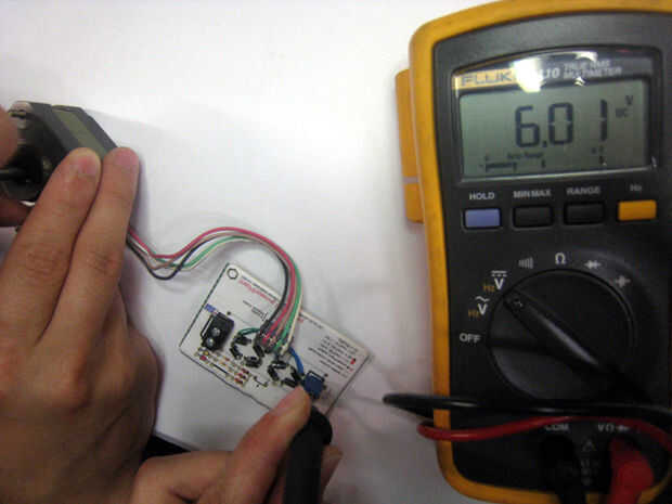 Conecte los cables del motor paso a paso hacia la cabecera de macho de 5 pines. El cable negro del motor paso a paso se debe colocar en el pin que no está etiquetado 1 bobina o bobina 2. Utilice el multímetro (poner en tensión) para medir el voltaje que produce el generador al girar el eje. Coloque la punta de prueba (rojo) positivo del multímetro en el tornillo positivo de cualquier terminal y la punta de prueba (negro) negativo en el negativo tornillo de la misma terminal. Girar el eje a mano debe generar cerca de 4-8 voltios.