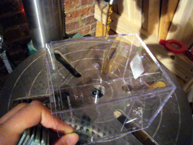 Uso la plantilla de caso proporcionada (descargable en el paso 1) para determinar y corte los orificios necesarios para los componentes. Utilizamos un láser de corte para marcar los agujeros de precisión (como este tipo de acrílico no se corte en el cortador del laser) y luego perforar los agujeros en consecuencia.