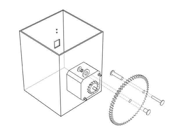 Luego inserte el poste de un 3/16 "x 1/4" tornillo dentro de la caja y obligatorios a través del agujero como se muestra. Arandela de SAE lugar uno #10 en el post y el lugar entonces el engranaje grande en la parte superior. Acabado enrollando el tornillo en el post.