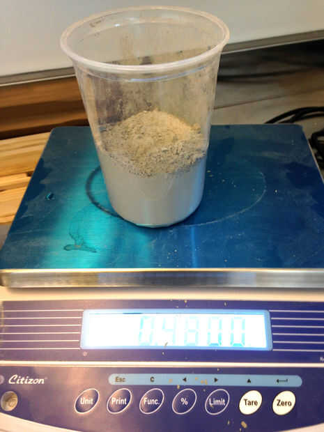 El concreto que estoy usando se llama Duracal y es una proporción de mezcla de cemento-agua 4:1. Terminé usando 480 gramos de Duracal y 120 gramos de agua (realmente recomiendo usar algo como 560 g de Duracal y 140 de agua) para que tenga un pequeño extra.