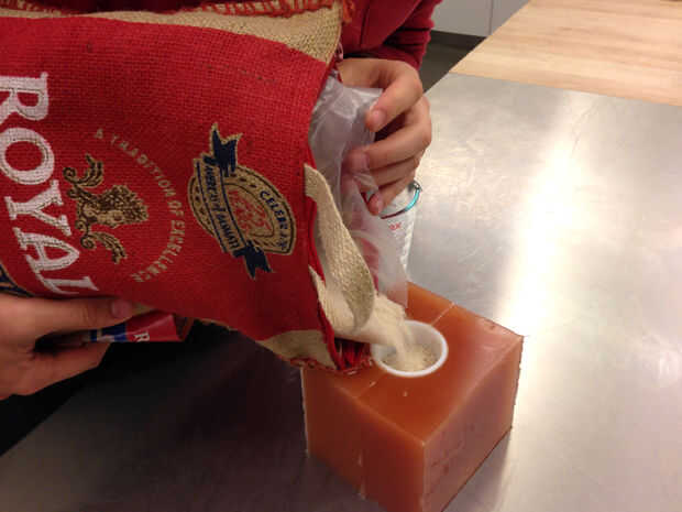 Ahora que tiene 2 moldes necesita medir el interior volumen para hacer el molde 3. Utilizar el arroz para llenar el interior del modelo. También necesitará agregar algo de volumen. Terminé usando la misma cantidad de volumen como en el molde 1 º y 2 º (270 ml y 540 ml.)