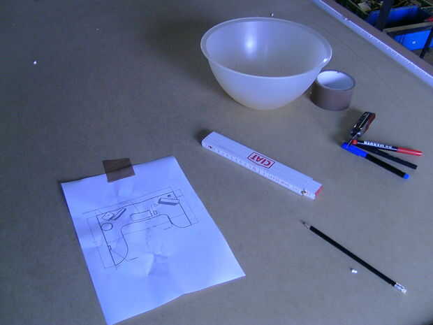 Como de costumbre empecé por "dibujar" el trazado previsto para la madera, ahora puedes ver en el tazón de fuente fue durante ;-)