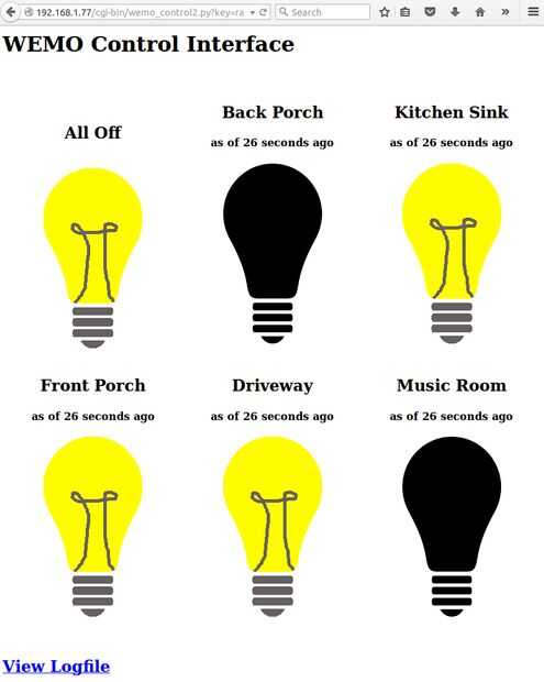 Nota: La página web se actualiza periódicamente. Combinado con el crontab en la siguiente instrucción de la página web se actualizará para reflejar el estado recién recogido del interruptor WEMO.