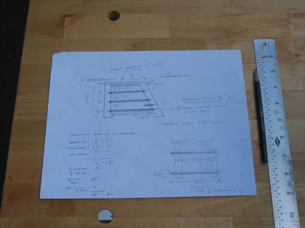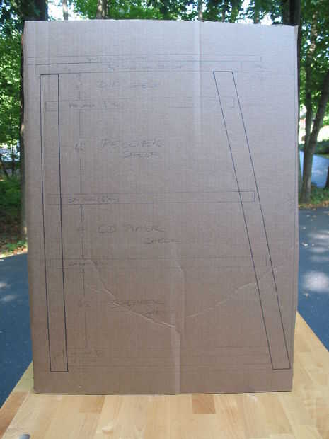 -En primer lugar dibujé un plano de tamaño completo (vista lateral) de mi proyecto. Se hicieron utilizando esta plantilla como una guía que me permitió comprobar la exactitud de mis partes (sobre todo las piernas y mortajas) antes y después de cualquier corte.