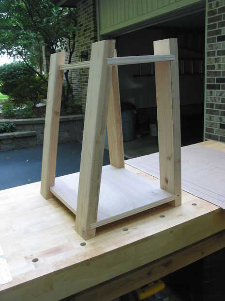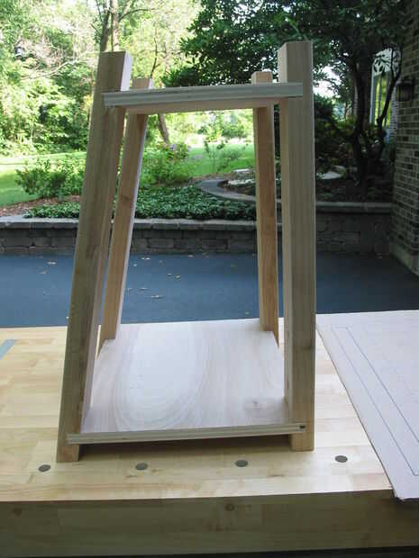(* Nota: edificio una muestra me convenció de que podía mejorar el aspecto de la unidad cambiando la ubicación de las mortajas para los estantes proyectan pasado el frente piernas en lugar de estar detrás de ellos.)