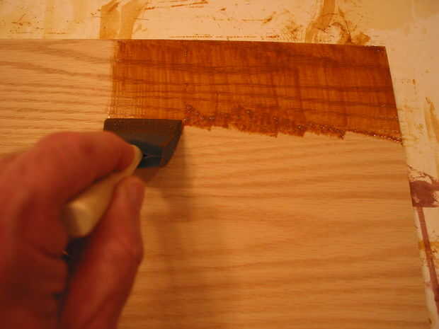 - Prefiero utilizar un pincel de espuma barato en lugar de un cepillo de cerdas para aplicar tinta para madera y también cuándo aplicar un agua base poliuretano acabado. Estos cepillos son muy baratos y pueden desecharse después del uso.