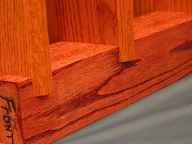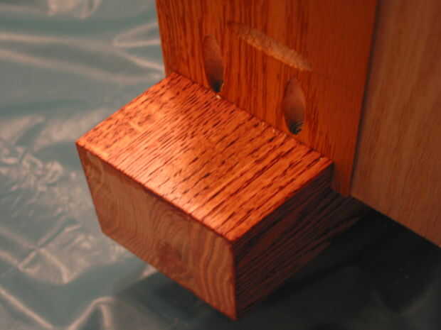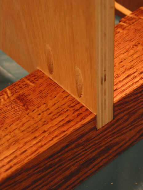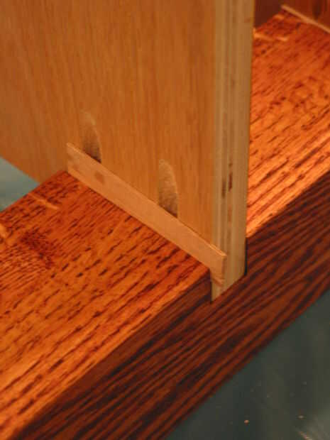 * Recuerde que equivocadamente cortar mis mortajas un completo 3/4" ancho en lugar del espesor de la madera contrachapada. Esto significó que las mortajas sobre mis patas traseras eran demasiado grandes para sujetar la madera contrachapada. Las imágenes de esta sección (números 6 y 7) muestran cómo solucioné el problema y se incluyen sólo a efectos de ilustración. Como molino cualquier madera para sus estantes al grueso de la madera contrachapada no tendrás que hacer el trabajo extra se muestra aquí, así que hacerlo fácil en sí mismo y aprender de mi error!