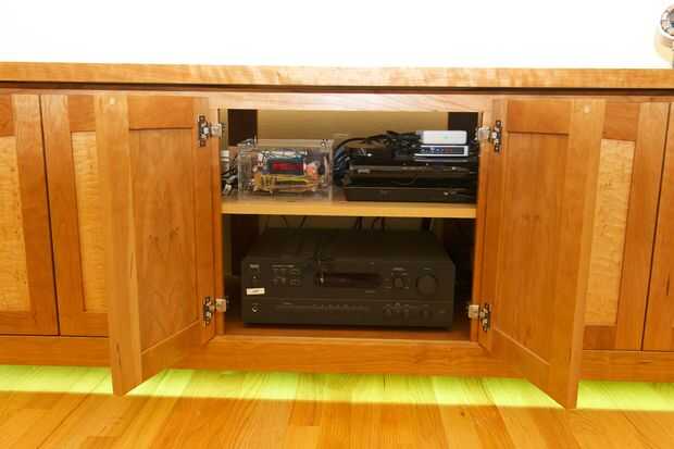 Hemos estado esperando volver a diseñar nuestra habitación durante un buen rato. Reproducción de música o viendo una película es increíblemente complicado, porque tenemos 6 mandos a distancia y muchos sistemas al menos uno de los componentes generalmente no funciona. Queríamos una manera de simplificar estos aspectos, mientras que al mismo tiempo crear una bonita pieza de mobiliario que no domina la sala como nuestro actual establecido.