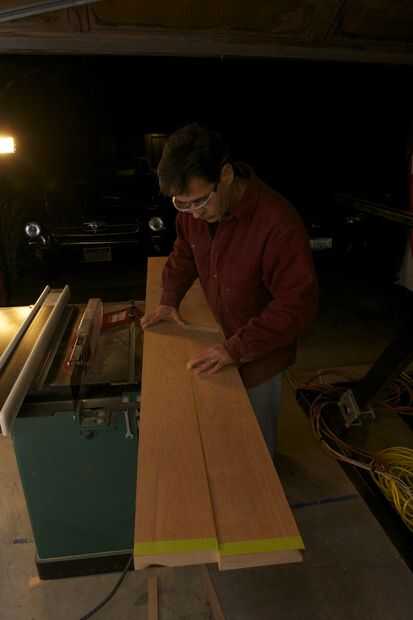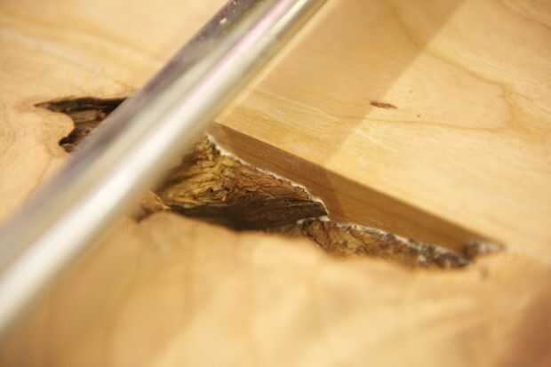 Acepillar estas tablas fue realmente interesante porque estaban tan espesa y amplia, sin embargo conseguimos hacerlo finalmente después de mucho trabajo pesado. Seleccionamos piezas con grandes nudos y agujeros en ellos porque esas características son realmente interesantes.