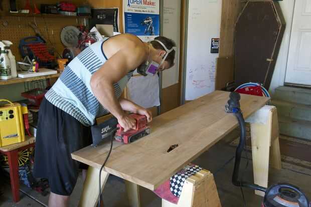 A pesar de que esto era probablemente el paso que tomó más tiempo, tiene la escritura más corta para arriba. Sólo asegúrese de lijar con el grano y cambiar a menudo las manos por lo que uno no caiga. También, es una buena idea llevar algún tipo de ventilador ya respirando serrín fino durante dos días directamente probablemente no es buena.