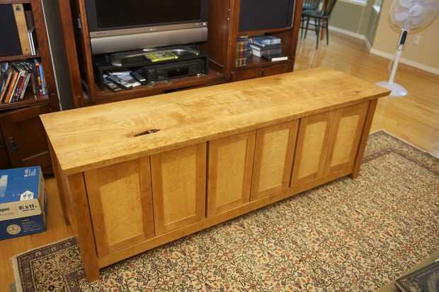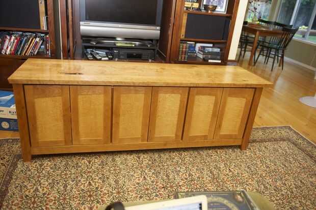 Una vez que todas las puertas estaban en, y una vez que fijamos la parte superior en, realmente parecía una pieza terminada de muebles. Mi papá y yo paso atrás y eran como "wow, que realmente se ve bastante bien...". Nos habíamos estado mirando todas las piezas por separado por meses, pero no fue hasta que estaban todos reunidos que realmente vino a la vida. Nos instalamos en nuestra habitación familiar, frente a nuestro actual centro de ocio que va reemplazando, sólo para tener una idea de lo que vería.