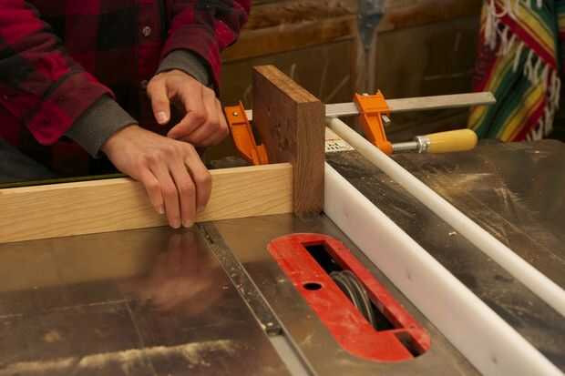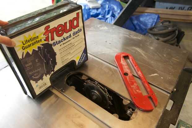Luego vino tirando hacia fuera de la hoja de mortajar y que ésos montados en la Sierra de mesa. Un disco de moldurar es básicamente que una tabla regular del disco pero simplemente super grasa. Permite hacer un corte super amplio, y sacar mucho material a la vez. La hoja de ranurar es útil para esta aplicación específica ya que le permite hacer espigas con rapidez y precisión. Simplemente establecemos un bloque y pasar la pieza con un calibrador de inglete, luego gire hacia un lado diferente y repetir. Hacer esto por los cuatro lados de la pieza y wallaa! ¡ Tienes una espiga! Consulte las fotos para obtener más información.