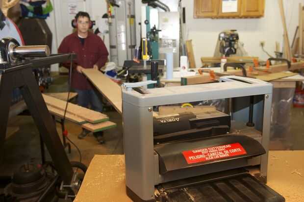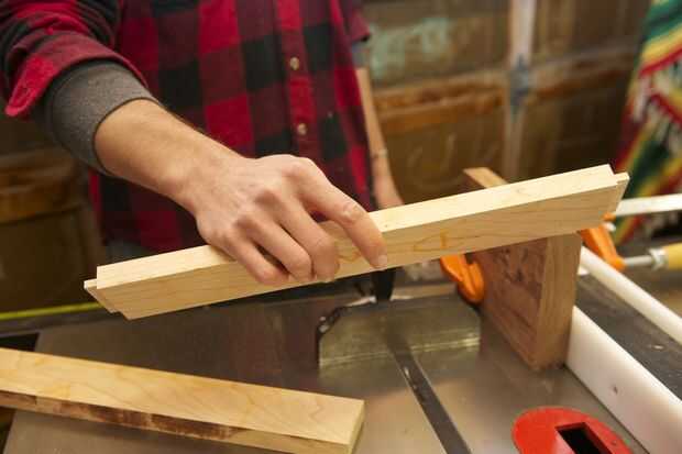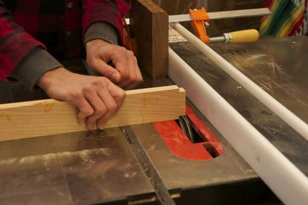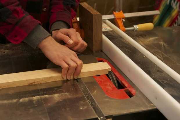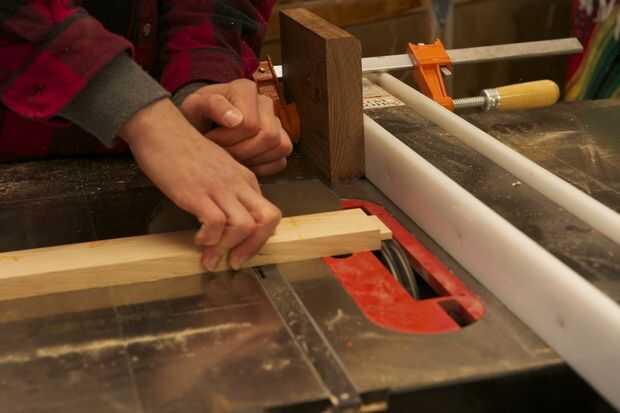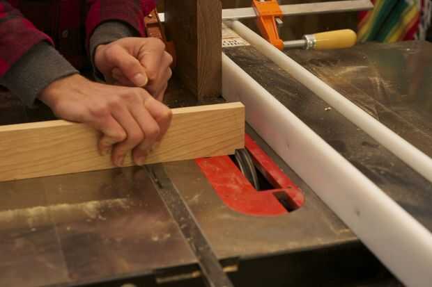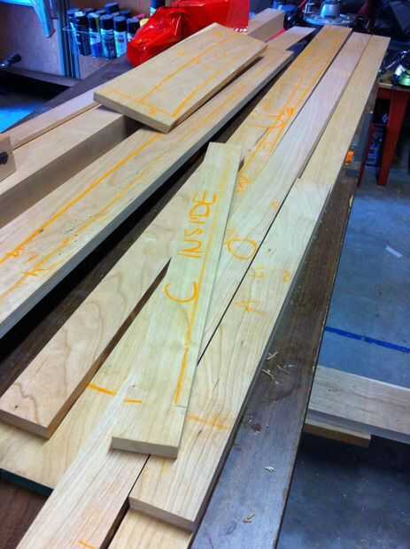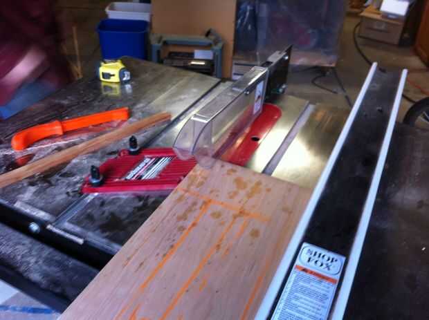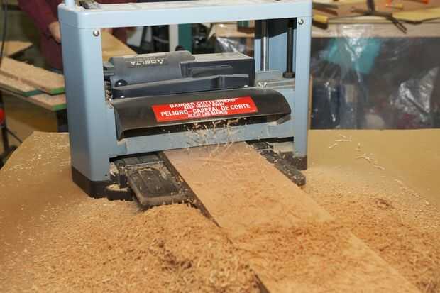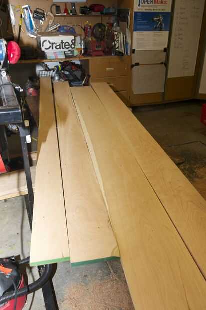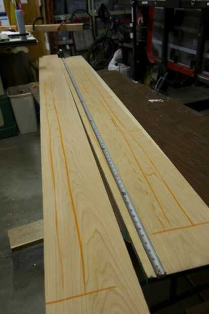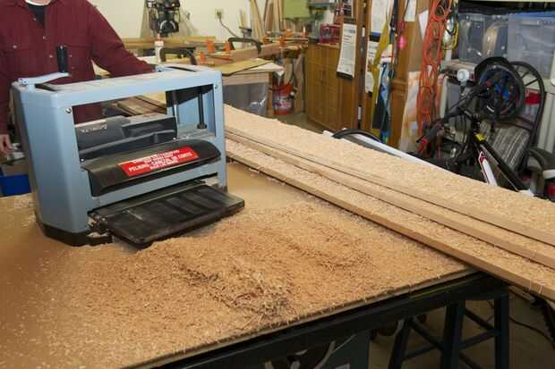 Una vez más, el primer paso es cepillar. Tenemos habían planeado nuestras tablas hasta 3/4 de pulgada, y nos aseguramos de hacer la pasada final del cepillado en cada tablero uno tras otro. Esto asegura que el cepillo se estableció en exactamente el mismo ancho de cada placa, por lo tanto garantizar que las diferentes tablas son todas la misma anchura.