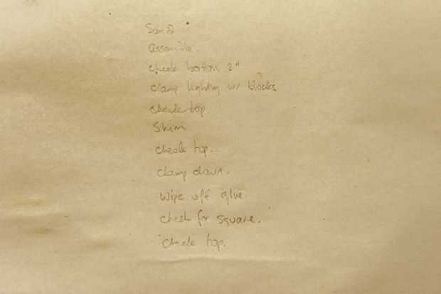 Había tantas cosas para comprobar durante la cola que tuvimos que hacer una lista para nosotros así que no dejes de comprobar nada. Por ejemplo, hay que asegurarse de que todo era cuadrado y plano, tuvimos para asegurarse de que la falda superior fue al ras con las piernas, tuvo que comprobar para asegurarse de que la dimensión es correcta desde la parte inferior de las piernas a la falda de la parte inferior, tuvimos que acuñe el revestimiento por lo que no había espacios en el exterior , etc.. Hay sólo un montón de cosas para ver! Y el pegamento no siempre realizable, por lo que realmente ayudó la lista.
