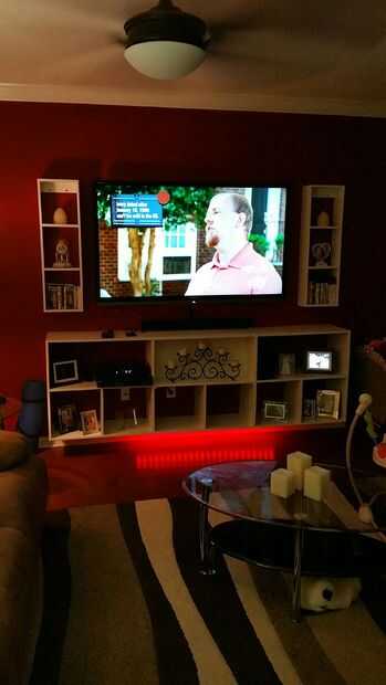 El reto:Tenía un centro de entretenimiento nuevo comprado en 2004. Me gustó el estilo, pero no acomodaría de una televisión de más de 35 pulgadas de ancho. Esto no funcionó en el nuevo mundo de televisores de pantalla plana grande. En 2008, decidió o
