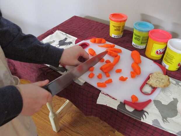 Además, sus herramientas de cocineros poco a trabajar con eso les preparará para ayudar con las tareas de la cocina real. Una cosa que deseaba que mis sobrinas y sobrinos que sean hábiles en es usando un cuchillo con seguridad Picar verduras, (algo han pedido para antes pero siempre he sido reacio a que lo hagan debido al peligro). Para ello, cogí un viejo cuchillo chefs y tabla de cortar para la cocina set y utiliza mi lijadora de banda para embotado el filo y la punta del cuchillo para que sea seguro para pequeñas manos. Ahora los niños pueden practicar con seguridad usando un cuchillo para cortar cosas como Play doh que permitirá practicar y perfeccionar su técnica para que van a estar dispuestos a usar un cuchillo (afilado) apropiado en el futuro.
