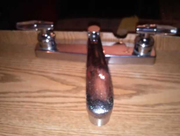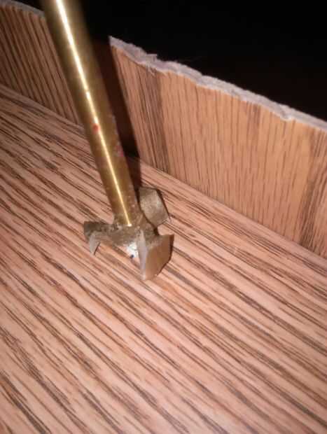Una vez que encuentre la alineación de su llave, mida la distancia desde el borde delantero del lado de la conexión de un agua a la vanguardia de los demás. Esta distancia será igual a la medida de centro a centro e implica menos guesstimating. Luego medir el ancho total de la grifería y su longitud. Medir a donde las conexiones de agua se va a través de la Junta y marcarlos. Recomiendo poner el grifo tan lejos como sea posible para que su basin(s) tenga un montón de espacio para. A pesar de que hice esto, todavía tenía que hacer un poco de trabajo extra en mi proyecto que cubrirá más adelante. Uso un agujero vio o broca que es sólo un poco más grande que las conexiones de agua para asegurar un ajuste preciso ajuste. Una vez ambos hols son marcados y perforados, prueba de montar el grifo y corregir cualquier problema ahora si bien es más fácil.