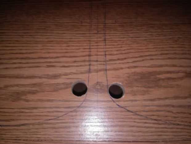 Moverse un pedazo grande de papel o carton y trace su basin(s) que va a utilizar para el fregadero. Pone el papel encima de ellos y utiliza un lápiz para trazar alrededor del interior borde para obtener esa línea exacta (algo así como un lápiz técnica del frotamiento). Luego cortar el patrón y comprobar contra el basin(s) para asegurarse de que tienes la plantilla de tamaño adecuado. Coloque la plantilla sobre la superficie del gabinete donde se ubicará el basin(s) y el rastro alrededor de él con un fácil marcador de ver. Una vez que las líneas se dibujan Coloque el grifo en los agujeros y compruebe ver si hay cualquier superposición de temas. No olvide considerar el labio de la basin(s) en la alineación. Con este proyecto la profundidad combinada de las cuencas y la anchura de la llave fueron más que el espacio disponible. Debido a esto tuve que añadir un paso. Ahora perfore otro agujero dentro del área que será cortado para ser utilizado para iniciar el corte. Un rompecabezas es probablemente la mejor forma de cortar este orificio forma impar para su basin(s), sólo asegúrese de tomar su tiempo con él para obtener un corte perpendicular a la superficie. Una vez que los agujeros se cortan completamente hacia fuera, prueba colocar el basin(s) y ajuste como sea necesario así que encajan muy bien.