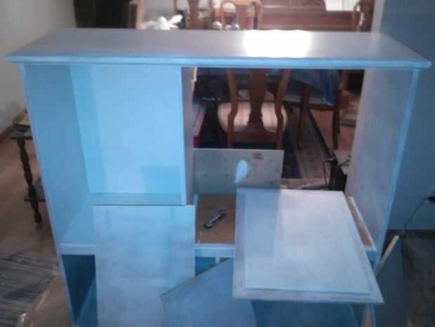 Ahora que su madera está preparado, es hora de pintar. Si su centro de entretenimiento tenía cualquier estantes, recomendaría poner nuevamente en ahora antes de pintar. Si se intenta volverlos a montar más adelante que el riesgo de rayar la pintura y hay que hacer retoques. Comenzar con capas finas de la cartilla o en una pintura. Permita que cada capa secar bien entre capa y capa. Una vez que ya no ves el color de la madera, agregar una capa final de pintura con el acabado y color que desee.