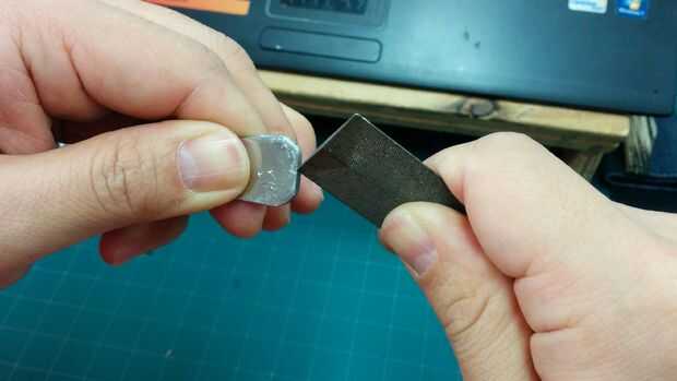 1. Crear un pequeño rasguño en el extremo de la horquilla. (Taladro, punzón, clavos, etc.)