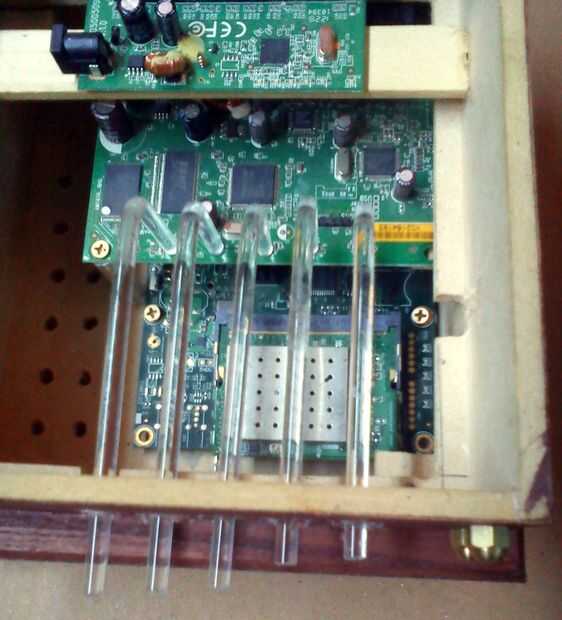 La decisión de mostrar el módem de LEDs de estado usando barras de acrílico puede parecer extraña a primera vista, pero siempre hay una explicación para todo.