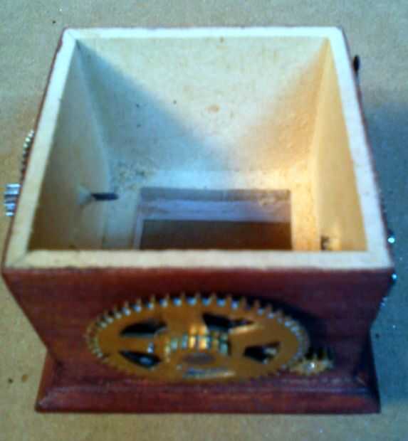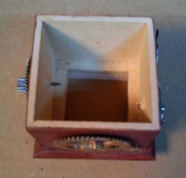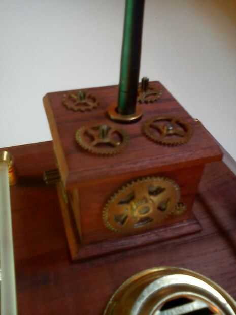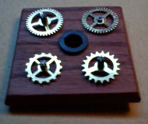 Después de lijado y acabado de colocar los engranajes. Engranajes de servir en una misión puramente decorativa y se obtuvieron de un reloj viejo.