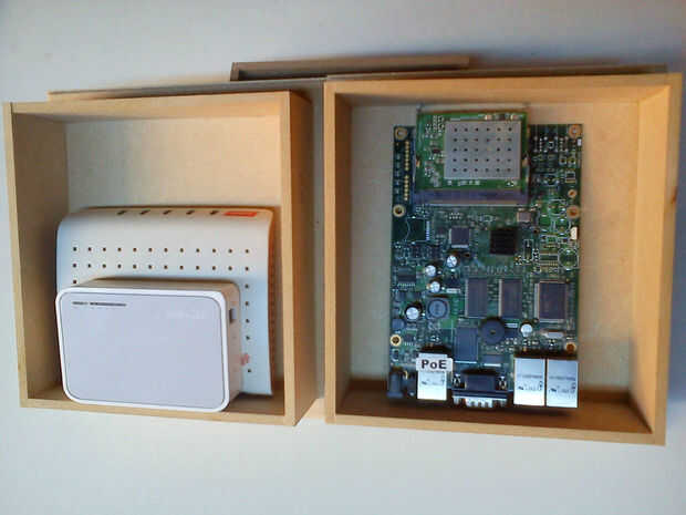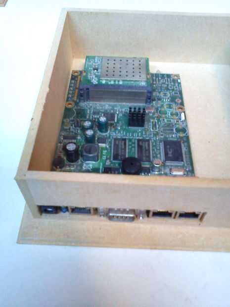 El tablero de puntos de acceso/router Mikrotik está situado en el cuadro inferior porque es el tablero más grande.