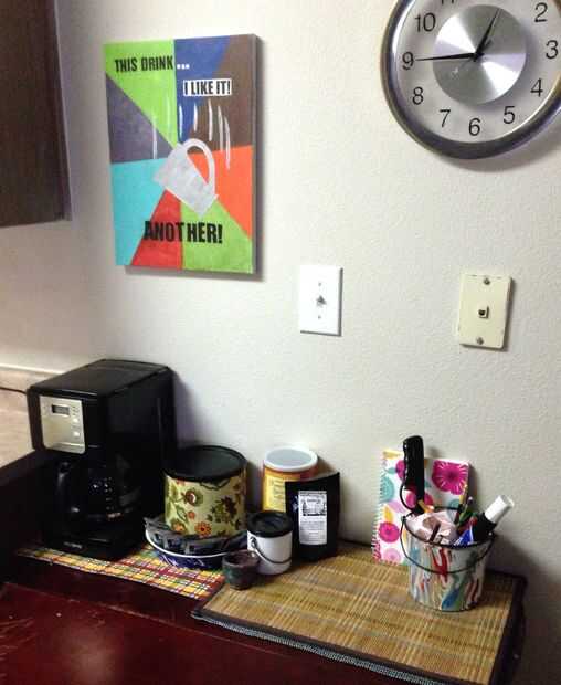 Vivo en un pequeño apartamento con una cocina pequeña. Pero hombre me encanta el café. Me encanta tener mi cafetera hacia fuera y enchufado y listo para funcionar en un momento. Me encanta tener mi café justo al lado de mi máquina de café para no tener que pensar demasiado en la mañana cuando filtre mi jarra (primero). También me gusta tener un lugar donde puedo anotar ideas, listas de tareas pendientes o comestibles listas de derecha cerca de la cafetera por lo que puedo escribir cosas mientras estoy esperando a mi olla colar. Con tan poco espacio, era muy difícil conseguir este puesto, pero allí pasó a ser un espacio totalmente inservible justo al lado del final de mi cocina... y resulta que muchas personas tienen un espacio inutilizable similar!
