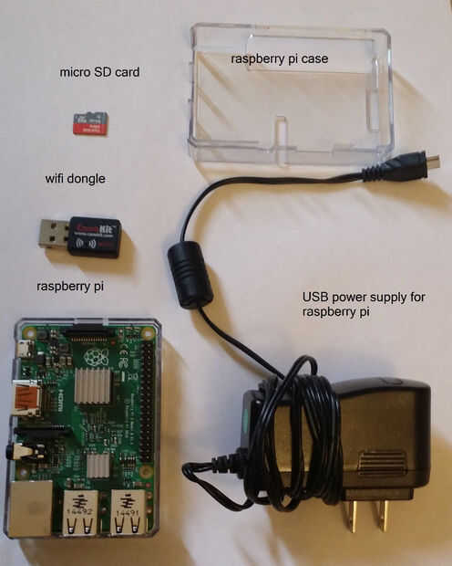 Usted puede comprar estos componentes por separado de amazon o puedes comprar un kit de frambuesa pi de amazon como este que tiene todos los componentes mencionados por 70$