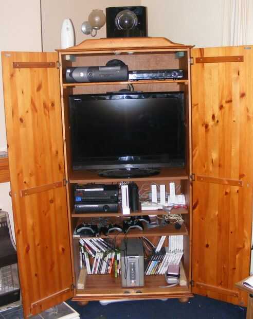 Estos días tenemos un montón de tecnología en nuestros hogares, una gran cantidad de este se utiliza para el entretenimiento; Reproductores de DVD, televisores, máquinas de juegos, incluso para ordenadores con medios caseros conectados a nuestra TV. Parece entonces lógico que debería existir una forma de almacenar de manera segura esta una) donde más se utiliza. b) lejos de los curiosos ojos de ladrones, he leido por ahí que la luz azul de carga, estaciones de Wii está garantizado para conseguir a estos indeseables mirando en tu ventana. Estábamos en una casa de amigos cuando observamos un gran armario lacado en la esquina de la habitación, éste resultó ser un centro muy caro media página, donde todos los antes mencionados artículos donde almacenadas de forma segura. Esto me hizo pensar. No somos ricos, así que decidí construir mi propio. No se preocupe la gente, realmente no es tan difícil!