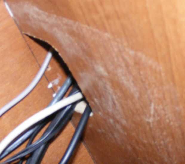 quité cuidadosamente los estantes (conglomerado) y (utilizando una sierra de calar) cortar una sección en la parte posterior de cada uno, lo suficientemente grande como para pasar cómodamente un enchufe y los cables, también cortar un agujero en la parte posterior de la unidad para permitir que una clavija hacia fuera. Como los estantes sólo tenían equipados con soportes de pegamento y estante de madera, encontré algunos buenos tornillos largos de conglomerado y utilizó éstos para volver a colocarlos, oye no quiero que mi TV que caiga el armario!